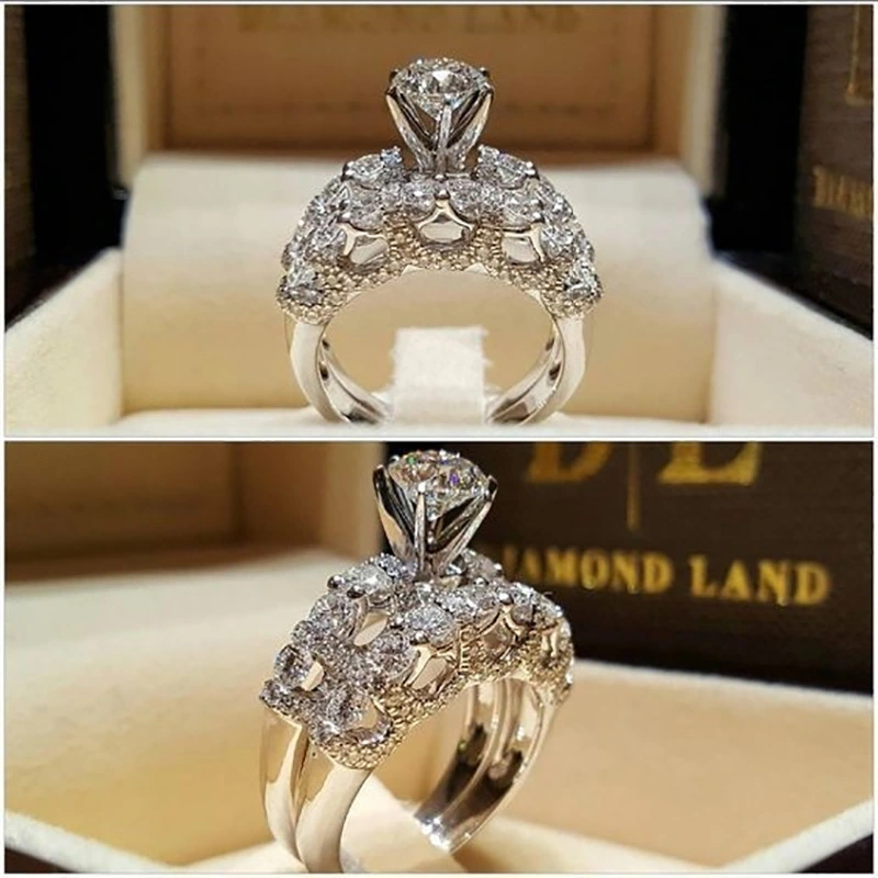 خاتم زوجين من البلاتين مرصع بالألماس بتصميم أوروبي وأمريكي كلاسيكي مجوف بسعر خاص
