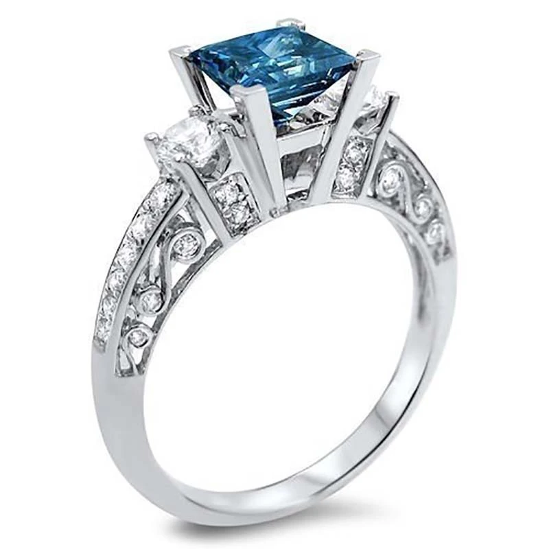 خاتم الأميرة المربع الجديد الأكثر مبيعًا على الطراز الأوروبي والأمريكي المرصع بالزركون مجوهرات نسائية خاتم خطوبة وزواج