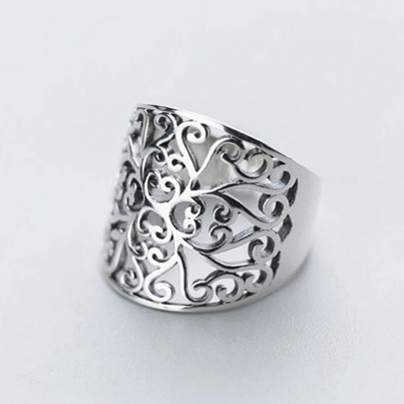 خاتم زهرة ميمونة محفورة بشكل كلاسيكي بتصميم عريض من خاتم مياو على الطراز العرقي من يونان، مجوهرات للرجال والنساء