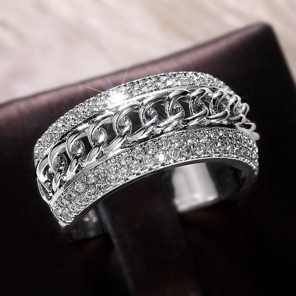 خاتم سلسلة كوبية مرصع بالزركون الدقيق على طراز الهيب هوب، خواتم عصرية للرجال والنساء، مجوهرات أوروبية وأمريكية جديدة للبيع بالجملة