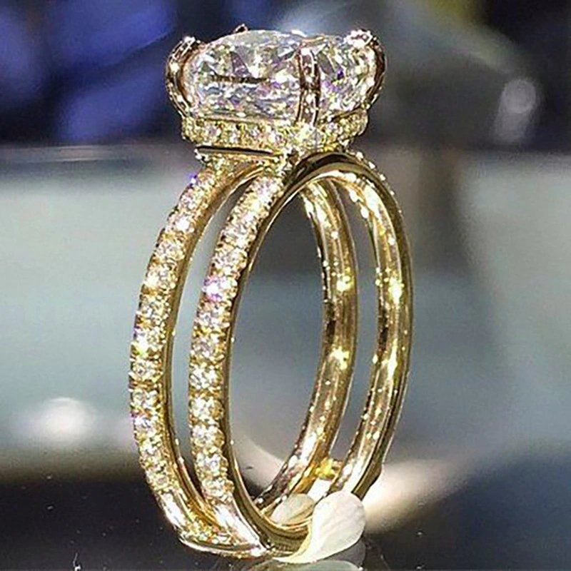 خاتم الأميرة المربع الجديد الأكثر مبيعًا على الطراز الأوروبي والأمريكي المرصع بالزركون مجوهرات نسائية خاتم خطوبة وزواج