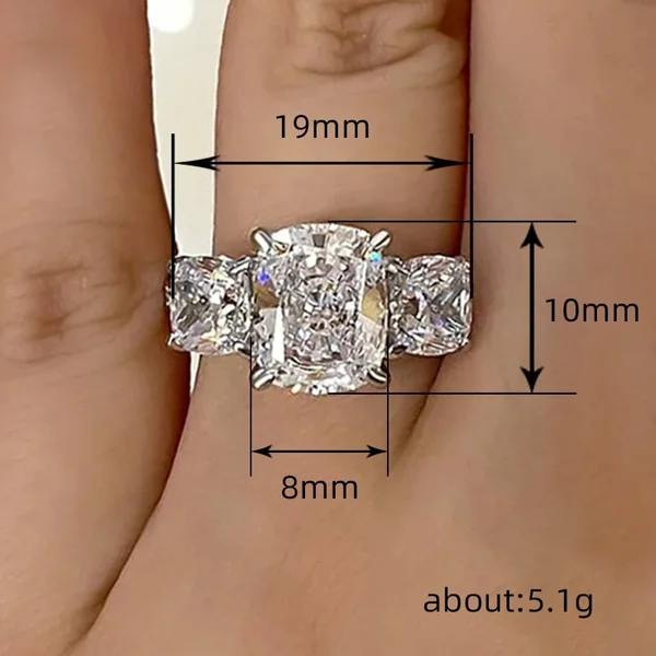 خاتم شعبي فاخر خفيف الوزن على شكل أميرة مربعة الشكل من الألماس خاتم مهيمن مزاج مبالغ فيه مجوهرات حفلات