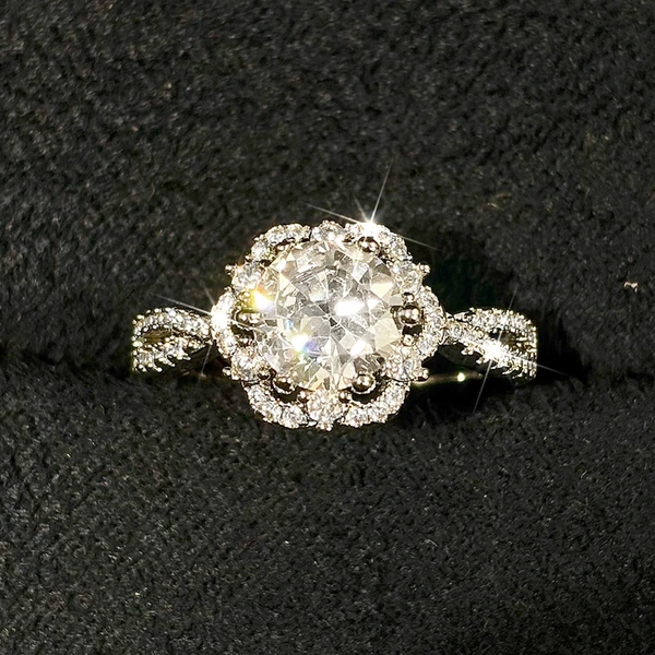 خاتم كلاسيكي مرصع بأحجار الزركون المقلد بأربعة مخالب للنساء، خاتم ذراع ملتوي مزدوج اللون، خاتم خطوبة وزواج للنساء