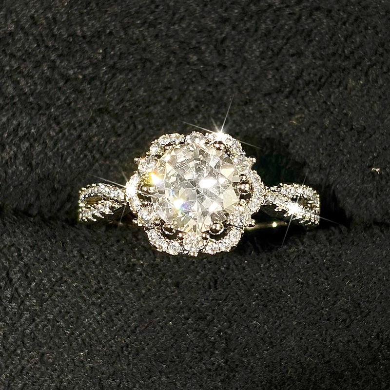 خاتم شياوهونغشو بنفس التصميم، خاتم نسائي مرصع بحجر دوار الشمس والزركون، خاتم خطوبة وزواج