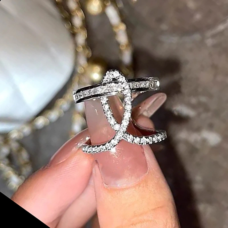 خاتم سماء مرصعة بالنجوم بتصميم نيتش نسائي، خاتم زوجين مليئ بالزركون، خاتم أنثوي عصري رائع بإصبع السبابة