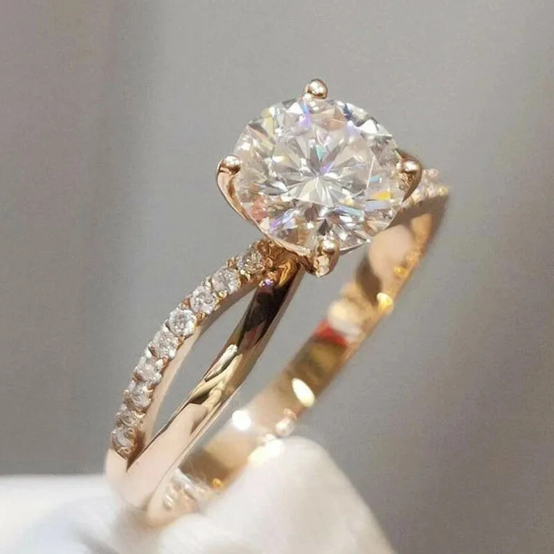 خاتم كلاسيكي مرصع بأحجار الزركون المقلد بأربعة مخالب للنساء، خاتم ذراع ملتوي مزدوج اللون، خاتم خطوبة وزواج للنساء