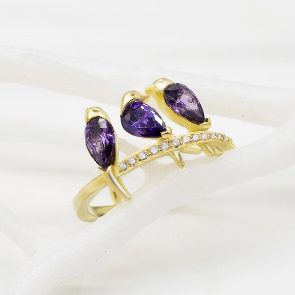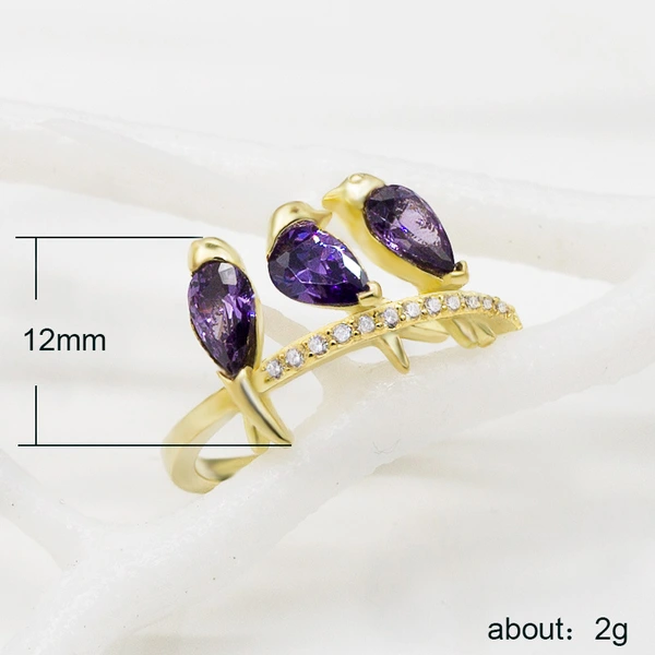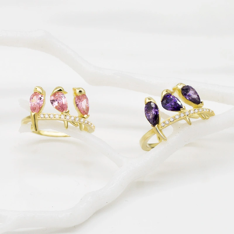 خاتم صغير من الزركون المرصع بالجواهر بتصميم ثلاث طيور إبداعي وجذاب من أوروبا وأمريكا الأكثر مبيعًا للسيدات