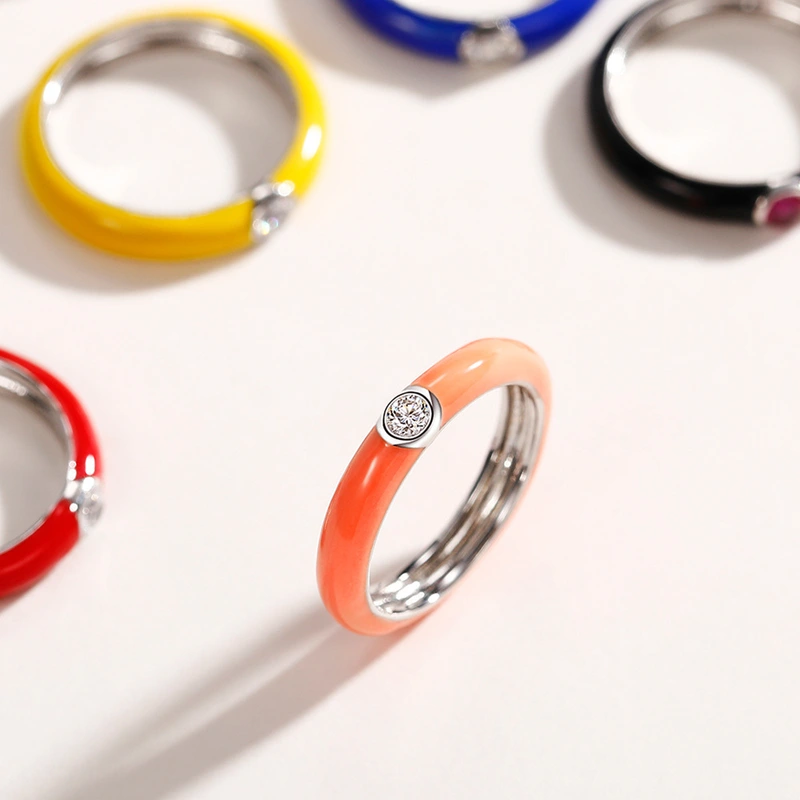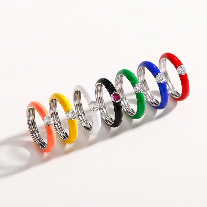 خاتم صيفي جديد على شكل خاتم زيت المينا بألوان قوس قزح خاتم نسائي عصري أوروبي وأمريكي بإصبع السبابة