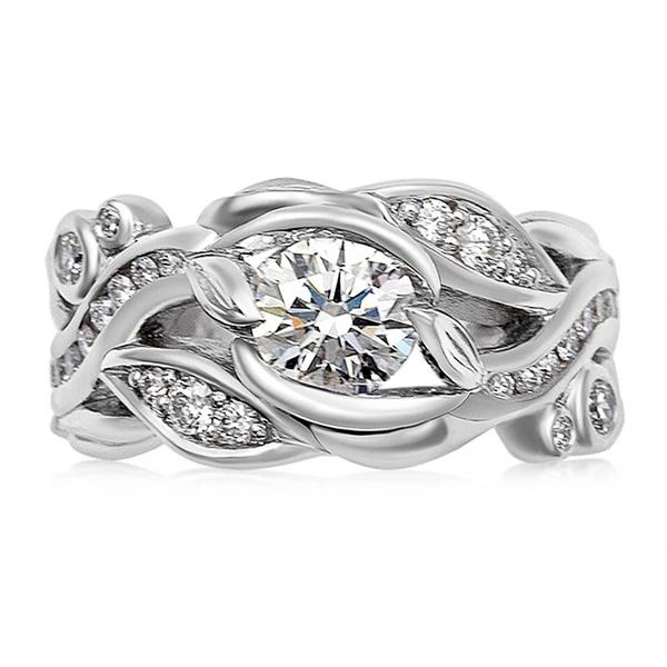 خاتم كلاسيكي مرصع بأحجار الزركون المقلد بأربعة مخالب للنساء، خاتم ذراع ملتوي مزدوج اللون، خاتم خطوبة وزواج للنساء