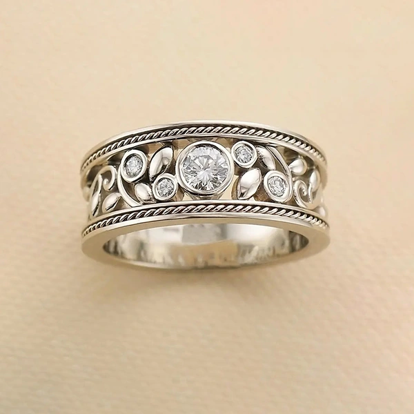خاتم عريض بتصميم ريترو عصري يناسب جميع الأذواق، سوار زهرة مجوف ثقيل، شخصية على الطراز الباروكي