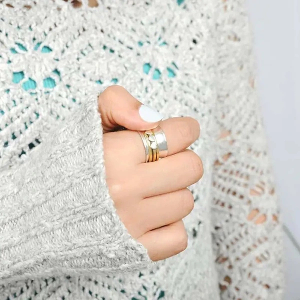 خاتم عريض منحوت على طراز البانك القديم بثلاثة قلوب مزين بحلقات ثنائية اللون، مبيعات مباشرة من المصنع