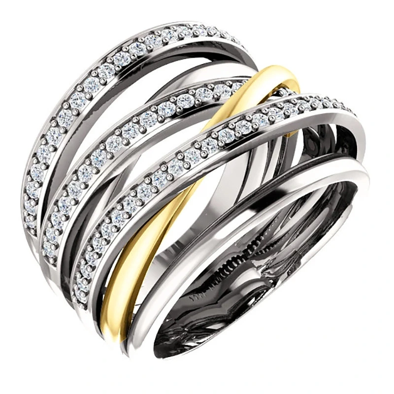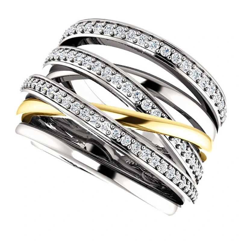 خاتم عصري جديد من الزركون المرصع متعدد الخطوط متعدد الصفوف بتصميم إبداعي للتجارة الإلكترونية خاتم شعبي