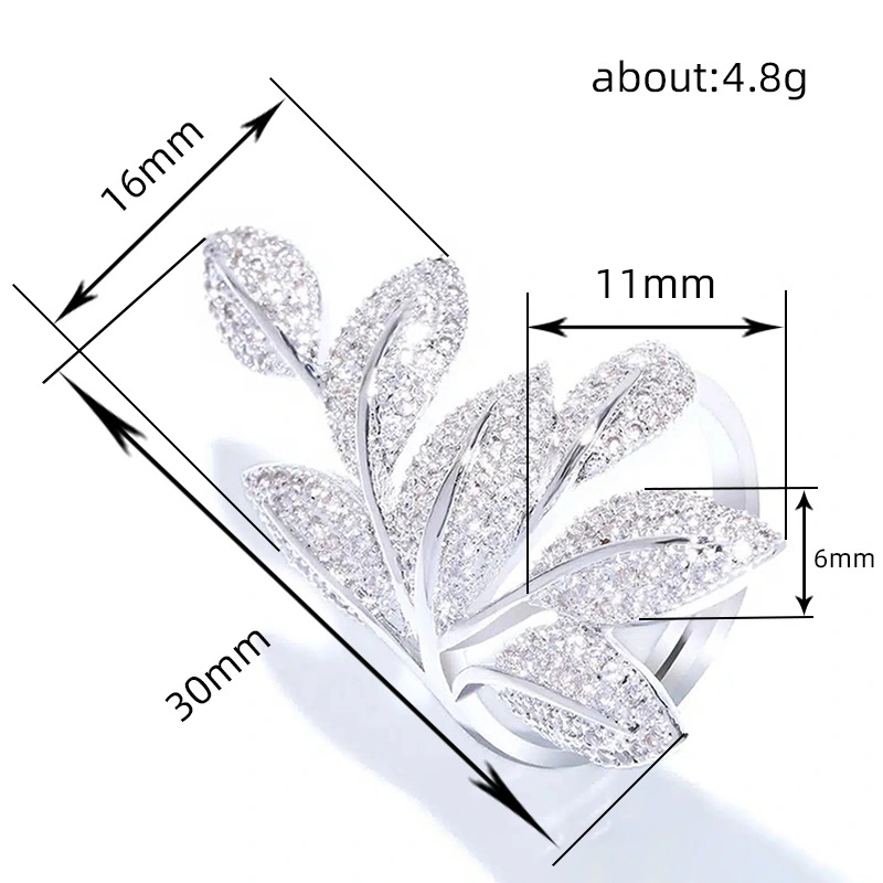 خاتم عصري مزين بأوراق الشجر من الزركون الأكثر مبيعًا للنساء خاتم مبالغ فيه على شكل إصبع السبابة خاتم أوروبي وأمريكي مزين بالزهور
