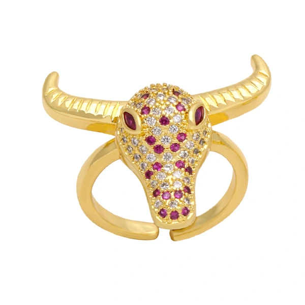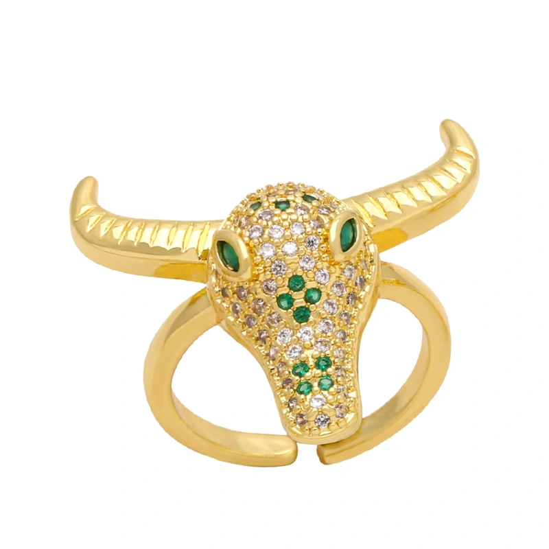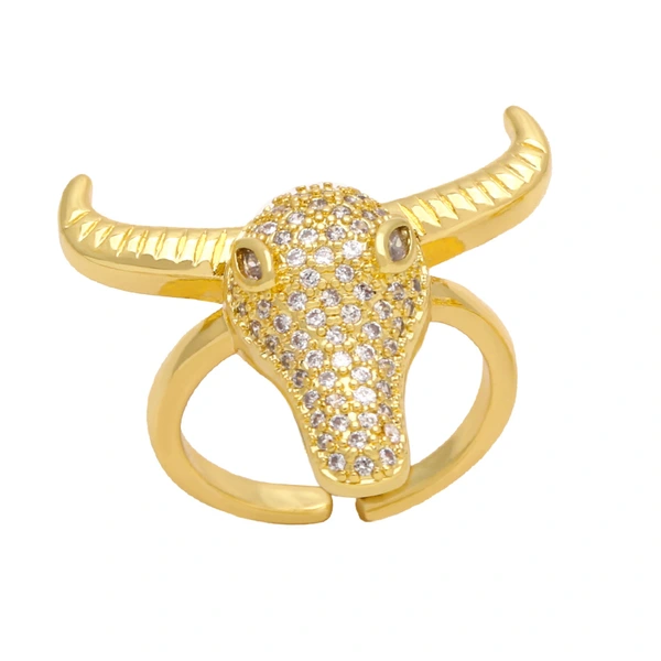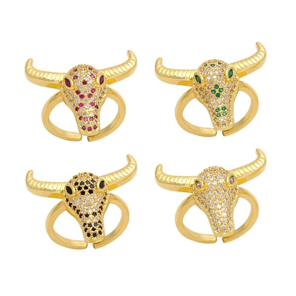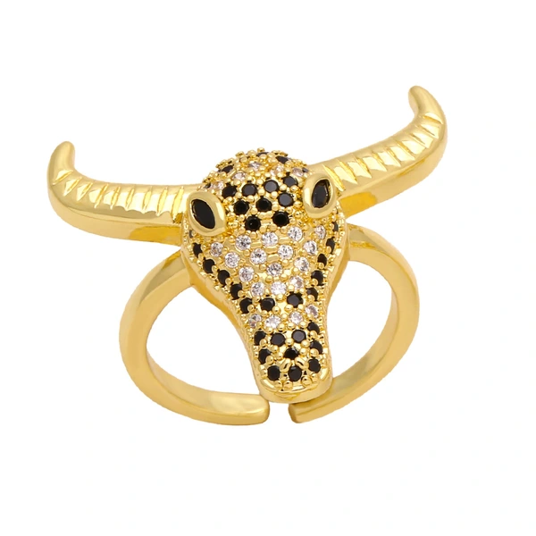 خاتم على شكل رأس ثور بتصميم عرقي أوروبي وأمريكي، خاتم مفتوح قابل للتعديل مرصع بالزركون على شكل رأس ثور، طراز الهيب هوب، rij58