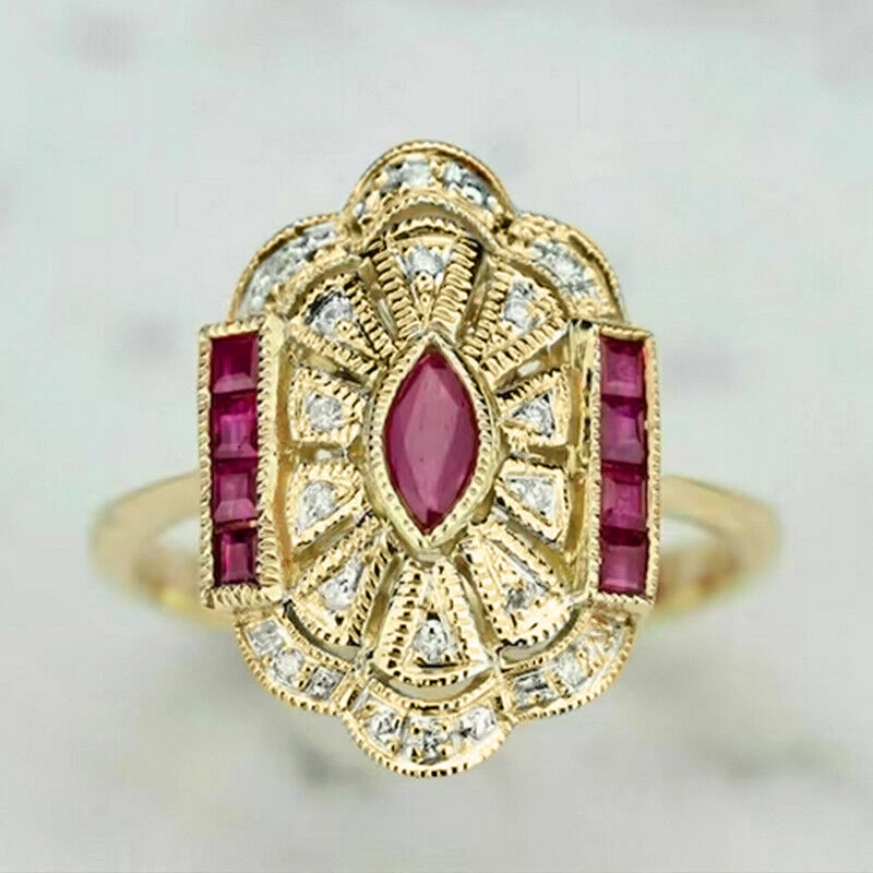 خاتم على شكل قصر على شكل عين حصان أوروبي وأمريكي للنساء، بتصميم فاخر خفيف، خاتم بريطاني عتيق، مناسب للحفلات المسائية