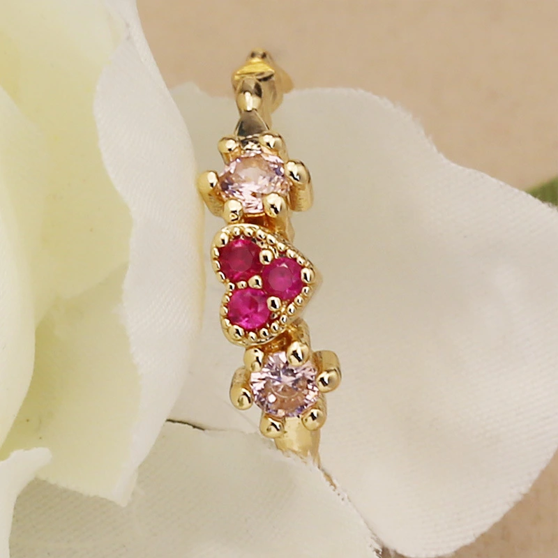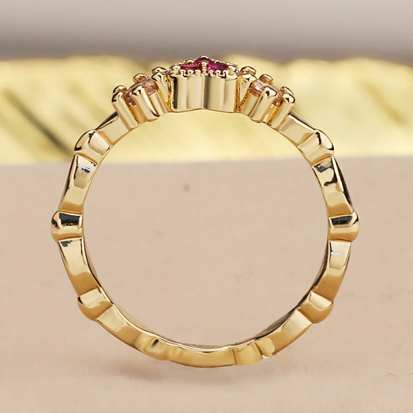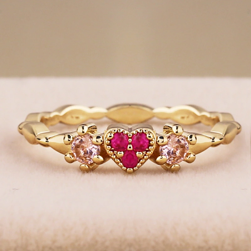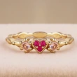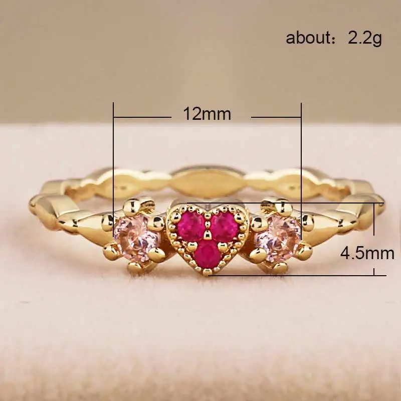 خاتم على شكل قلب من النحاس المطلي بالذهب المرصع بالزركون الأحمر للنساء، خاتم على شكل ذيل تاج صغير من مجوهرات أجيت الطازجة