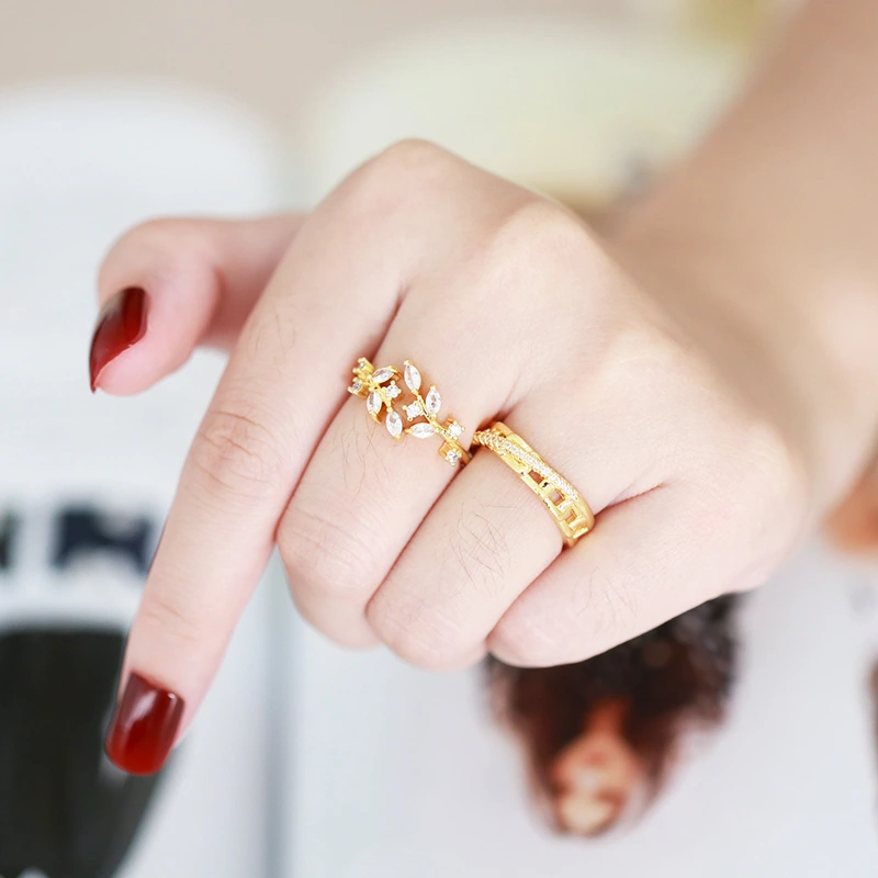 خاتم على شكل ورقة شجر بتصميم أنيق وعصري من أوروبا وأمريكا، مجوهرات مفتوحة من rir89