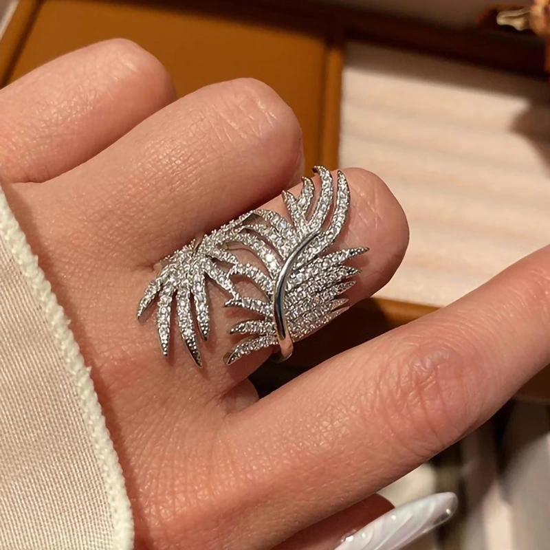 خاتم على شكل ورقة موز جديدة بتصميم عصري جديد خاتم مرصع بمجوهرات راقية للنساء
