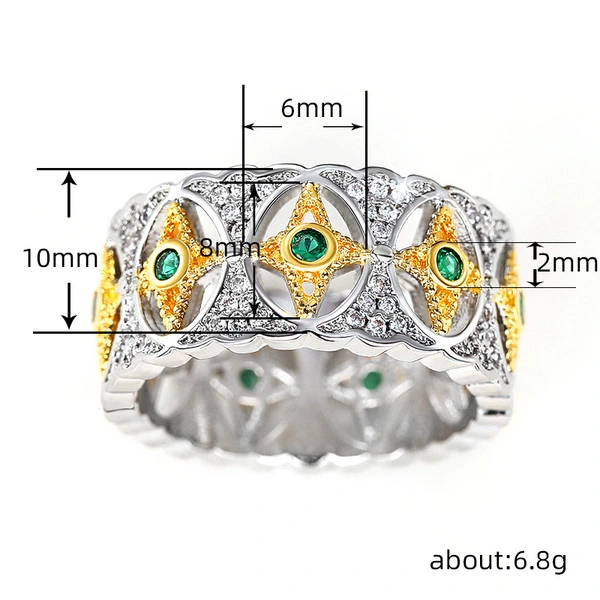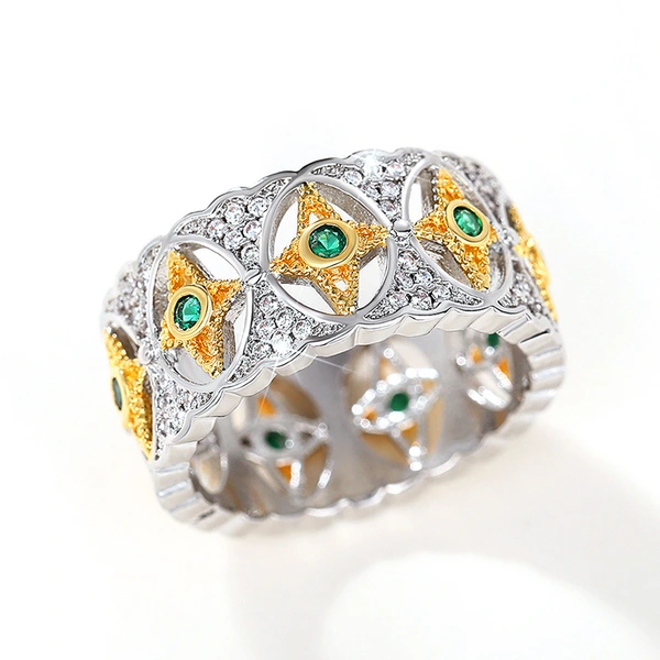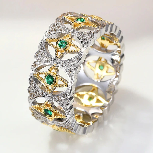 خاتم على طراز القصر الرجعي ثنائي اللون، خاتم نجمة وقمر فرنسي من العصور الوسطى، خاتم كلاسيكي مجوف من الدانتيل الزهري