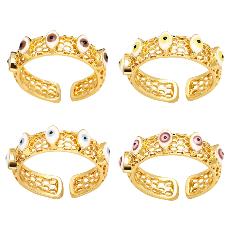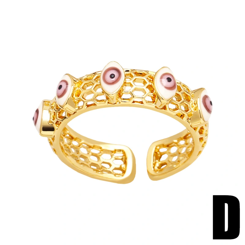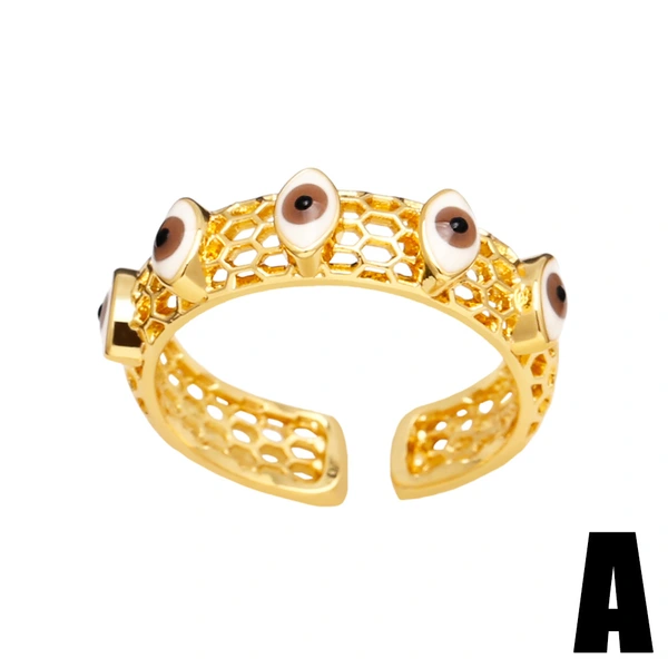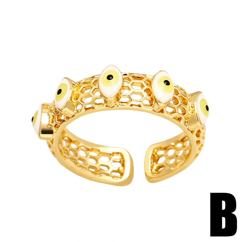 خاتم عين الشيطان المجوف للنساء بتصميم مميز على شكل قطرة زيت، خاتم مفتوح على شكل عين شريرة rir99