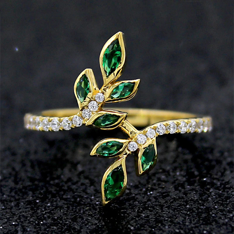 خاتم غصن زيتون الغابة الطازج الصغير ذو الأوراق الرقيقة، خاتم هندسي شائع في أوروبا والولايات المتحدة، بتصميم عصري