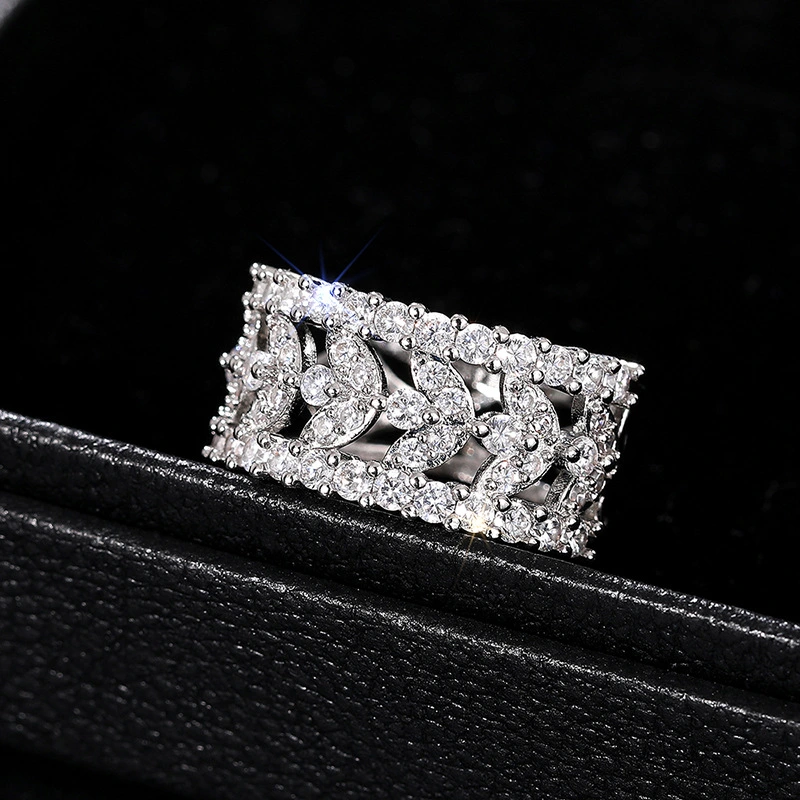 خاتم فاخر أوروبي وأمريكي نصف دائري بنفس خاتم السبابة على شكل أوراق الزهور بتصميم مجوف