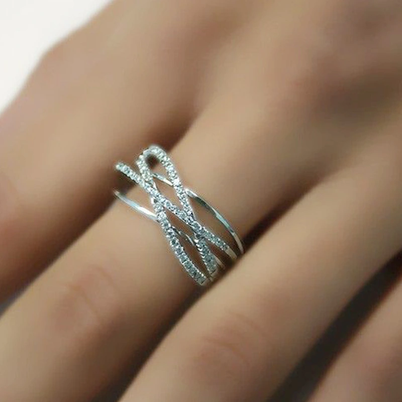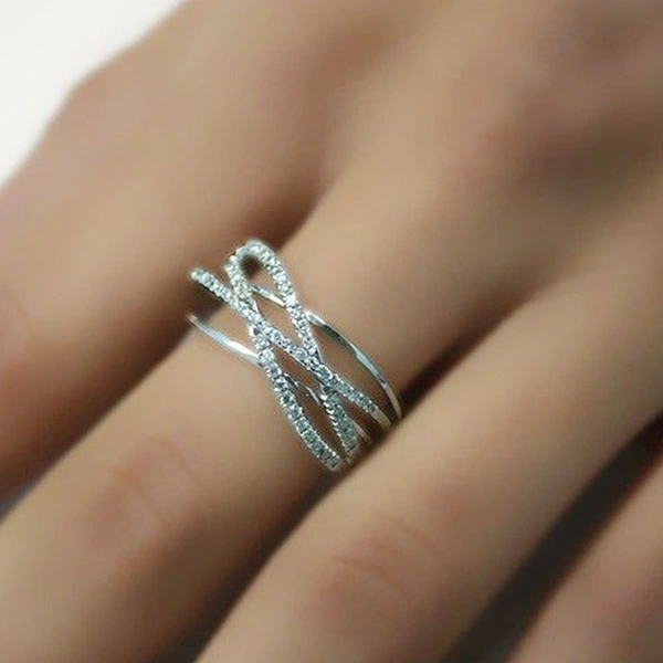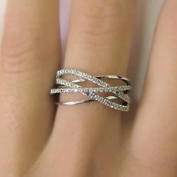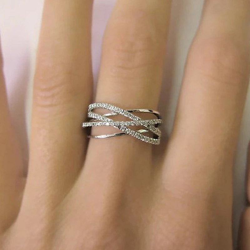 خاتم فاخر عالي الجودة بتصميم هندسي أنيق وخفيف الوزن مع سوار من الزركون فائق اللمعان