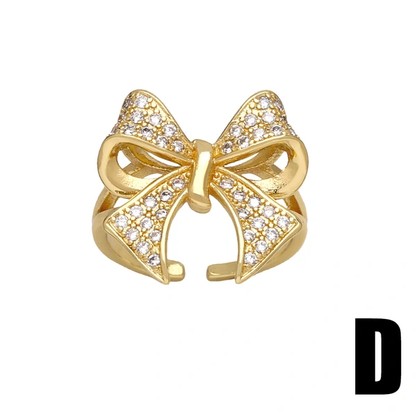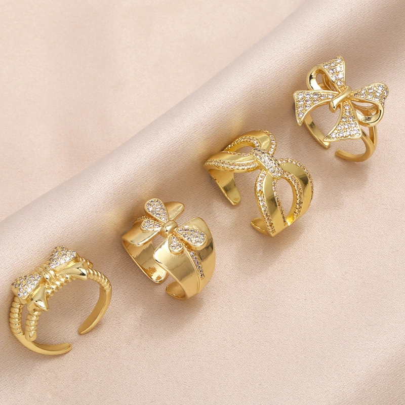 خاتم فراشة بسيط على الطراز الأوروبي والأمريكي، خاتم نسائي فاخر مرصع بالزركون على شكل فيونكة، مجوهرات rip02