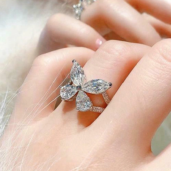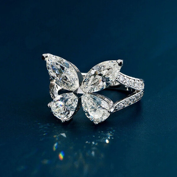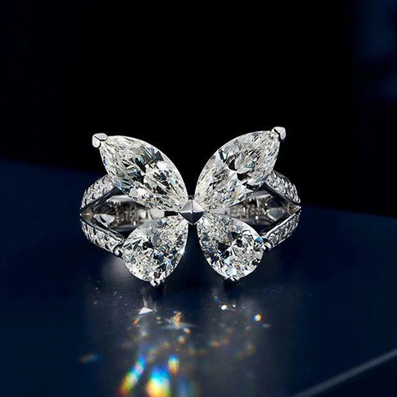 خاتم فراشة جميل على شكل دمعة للنساء، نفس نمط البث المباشر لمشاهير الإنترنت، خاتم نسائي من الزركون الفاخر الخفيف