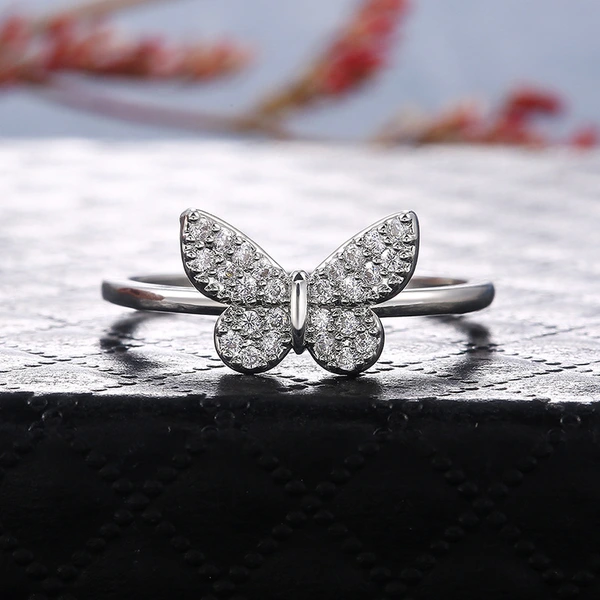 خاتم فراشة كلاسيكي مرصع بالزركون الصغير الأكثر مبيعًا خاتم إبداعي شخصي للنساء للبيع بالجملة