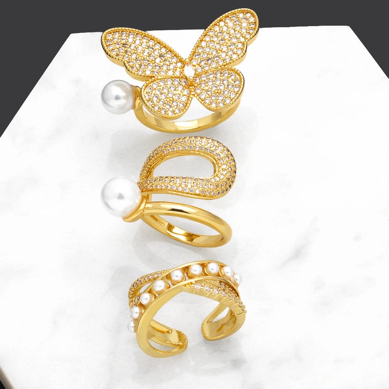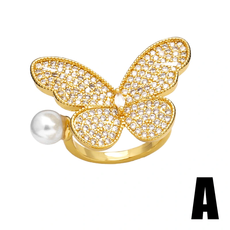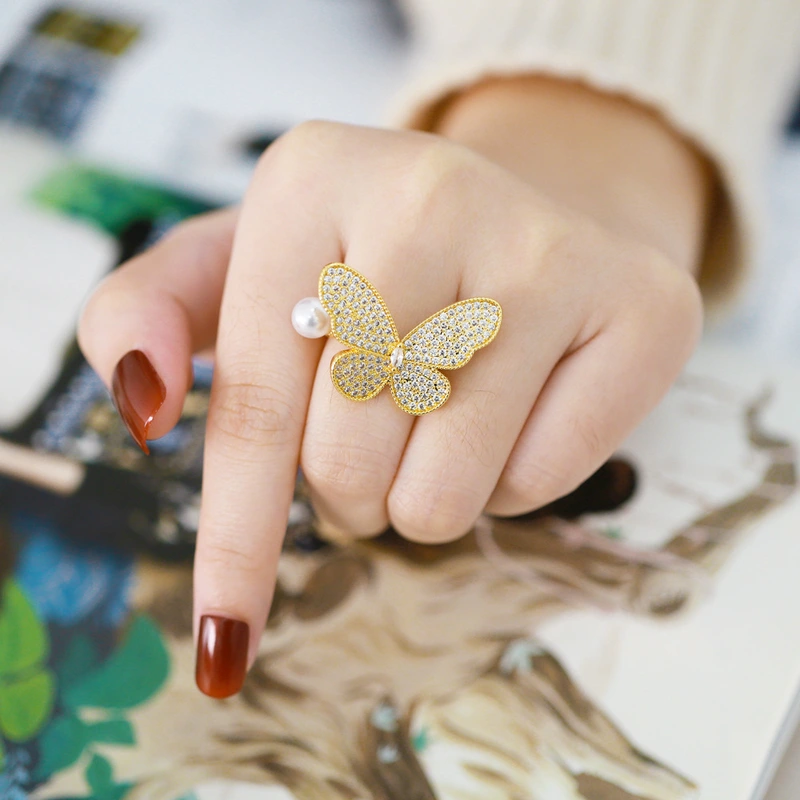 خاتم فراشة لؤلؤي جديد أوروبي وأمريكي بتصميم نيش نسائي عالي الجودة خاتم زركون ألماس عتيق rim49