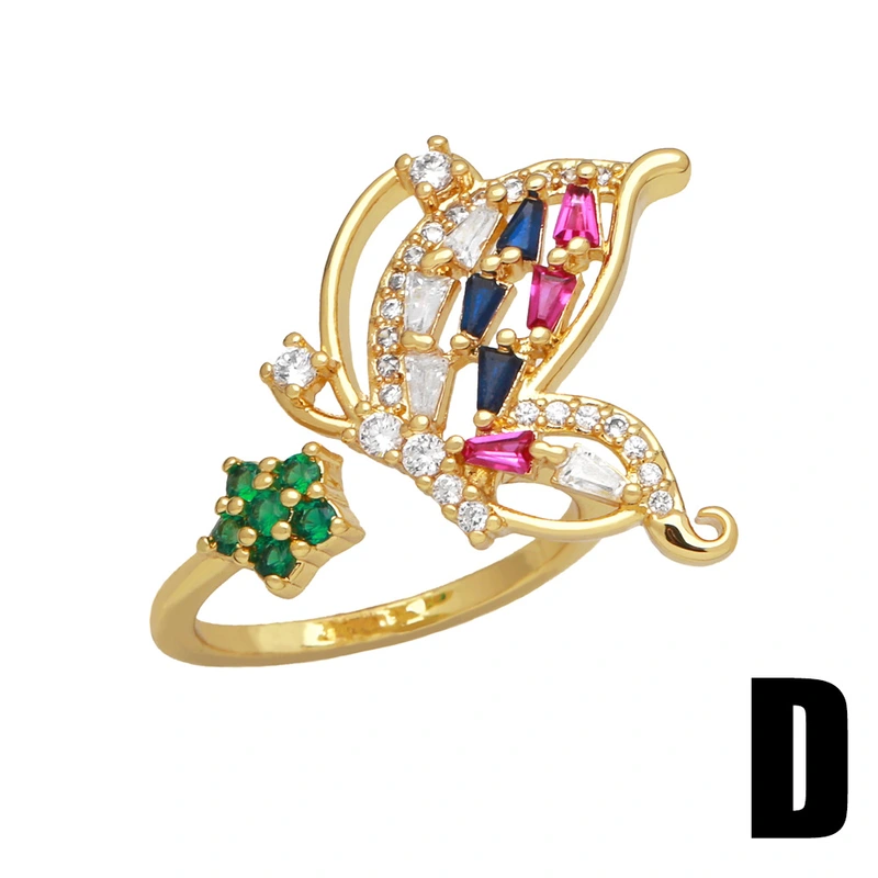 خاتم فراشة من الألماس الملون بتخفيضات، بتصميم أنثوي، مرصع بالزركون الملون، بتصميم ريترو، من إنتاج مشاهير الإنترنت، خاتم غير منتظم rij27