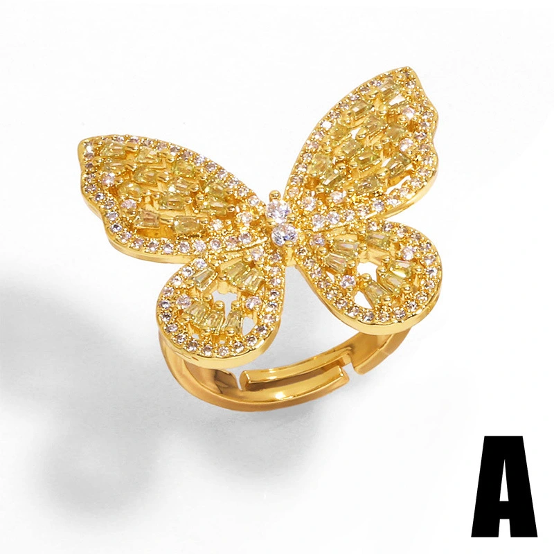خاتم فراشة من الزركون بتصميم أوروبي وأمريكي جذاب، خاتم أنيق وعصري للنساء، rin19