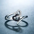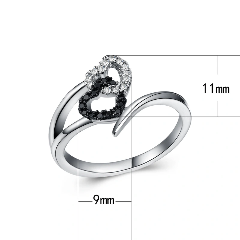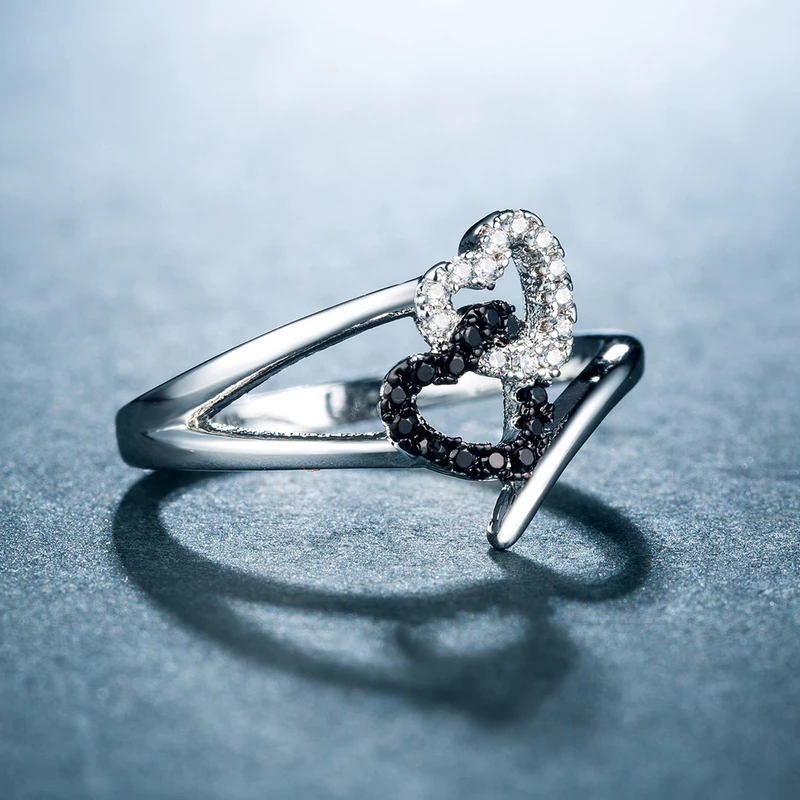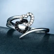 خاتم فصل الألوان الجديد على شكل قلب مزدوج الأكثر مبيعًا للنساء خاتم عصري مطلي بالنحاس من الذهب الأبيض مرصع بالزركون