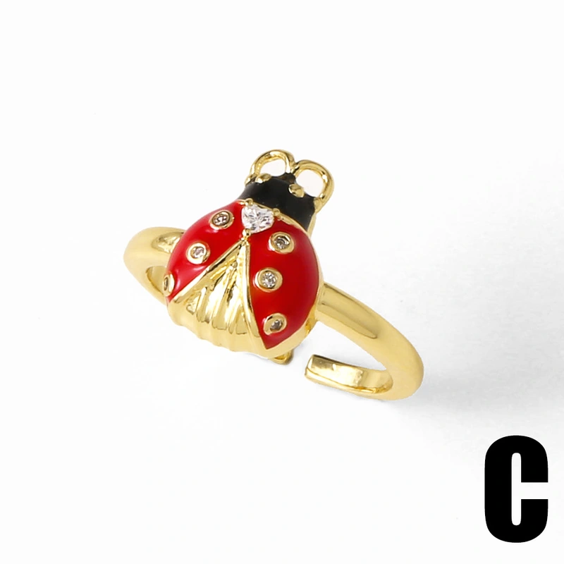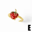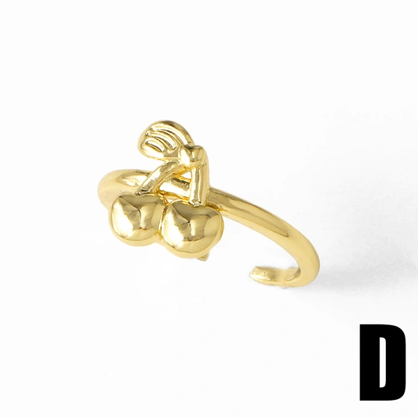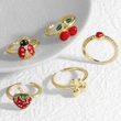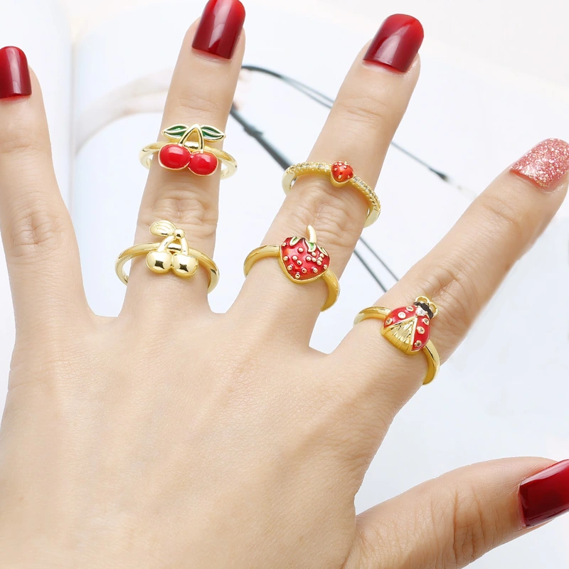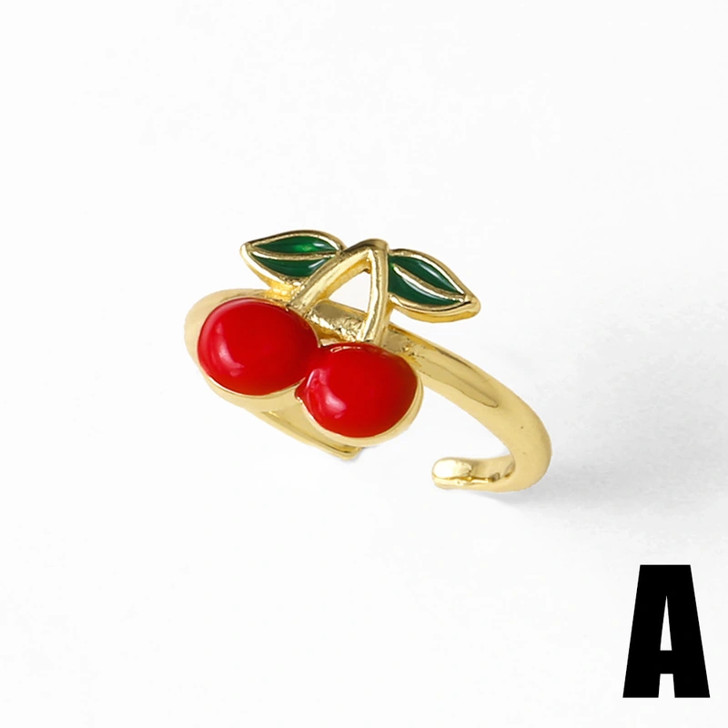 خاتم قابل للتعديل من النحاس المطلي بالذهب الحقيقي على شكل فاكهة الكرز، خاتم riq57
