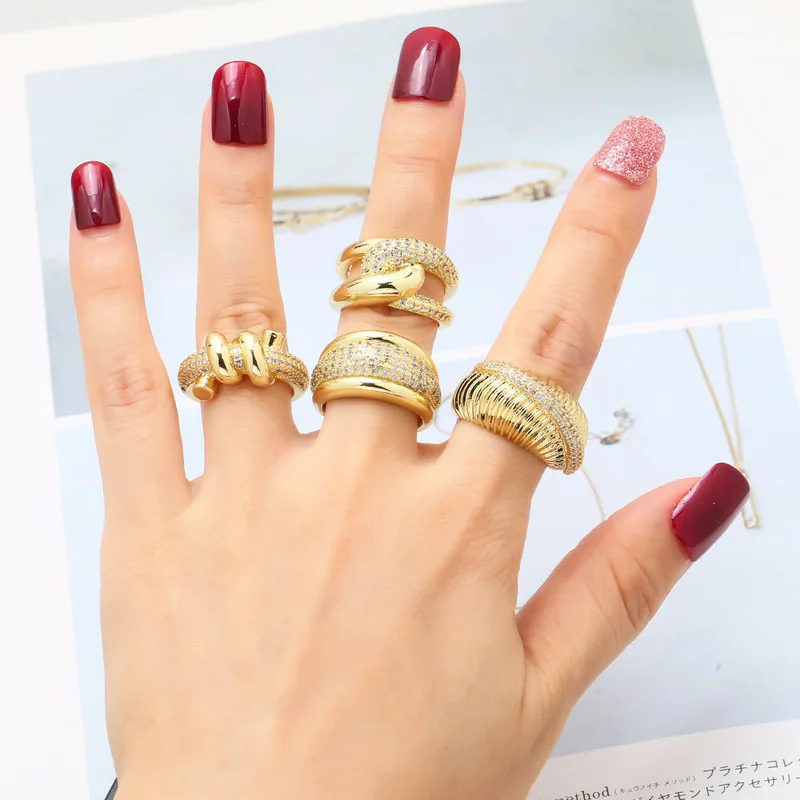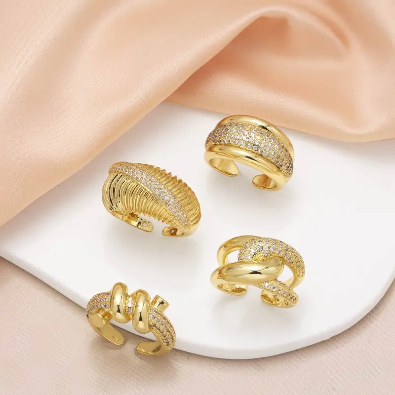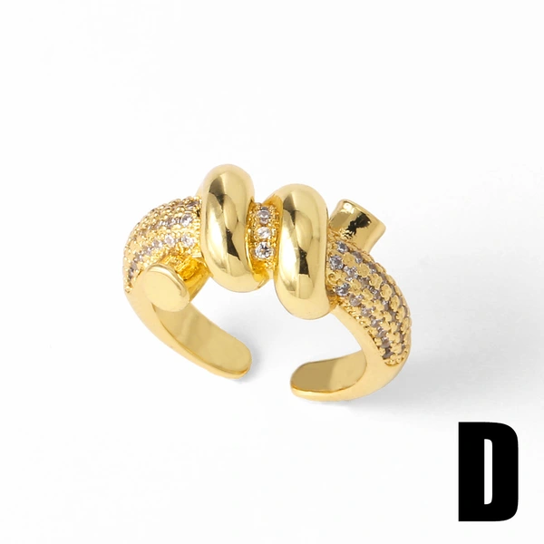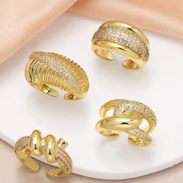 خاتم قرن من المجوهرات الأكثر مبيعًا في أوروبا والولايات المتحدة مطلي بالنحاس والذهب الحقيقي مرصع بالزركون خاتم مفتوح rih36