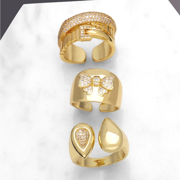 خاتم قطرة الماء الأكثر مبيعًا في أوروبا وأمريكا، خاتم نسائي عالي الجودة مطلي بالذهب مرصع بالزركون، خاتم فيونكة riq70