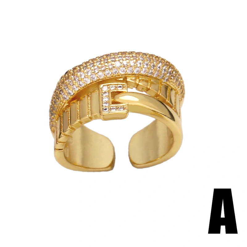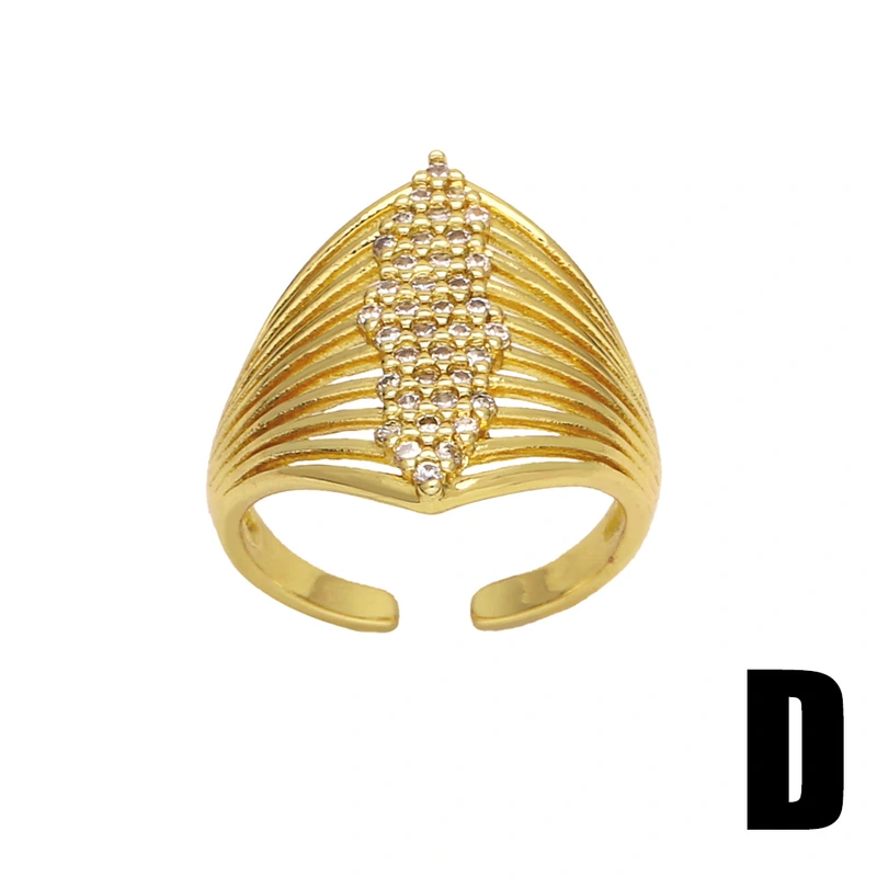 خاتم بتصميم أوروبي وأمريكي فاخر، خاتم عصري من الزركون على شكل عين الحصان، خاتم إصبع السبابة بتصميم مجوف متعدد الطبقات