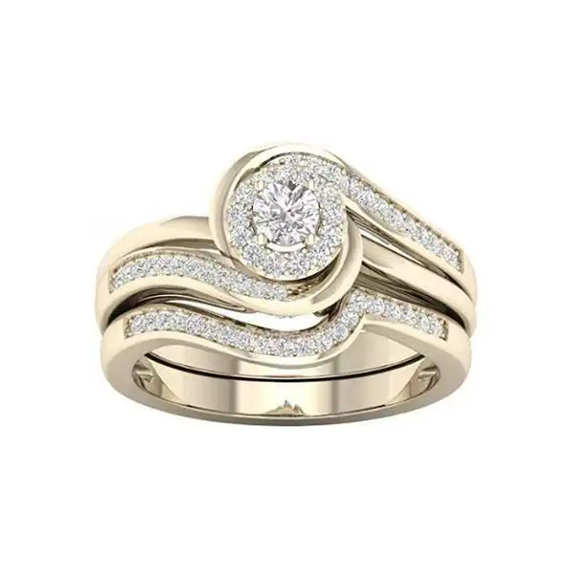 خاتم كريستالي مطلي بالذهب للنساء الأكثر مبيعًا في أوروبا وأمريكا، خاتم خطوبة نسائي بسعر الجملة