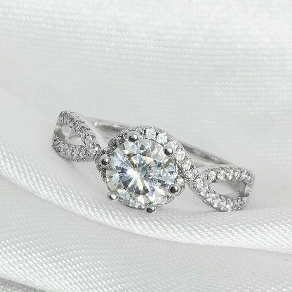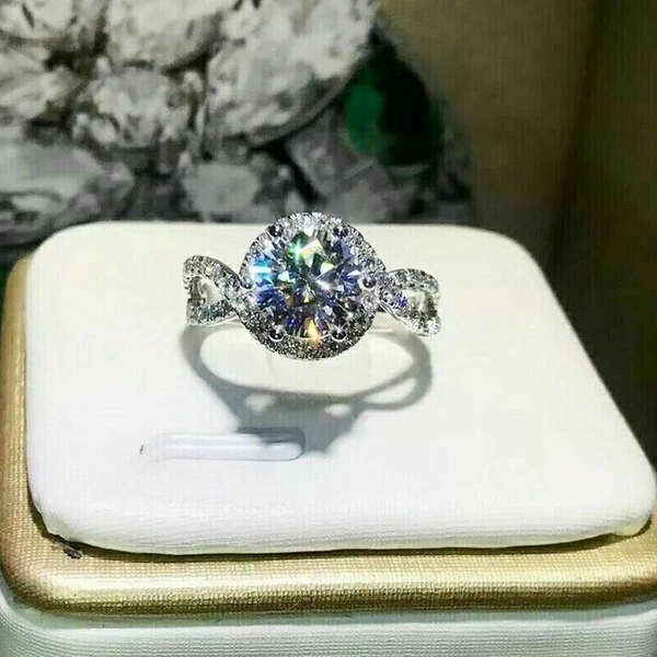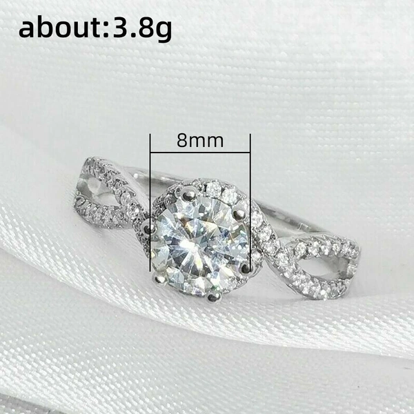خاتم كلاسيكي بستة مخالب من الزركون، مزود بحلقة مزدوجة من الزركون، مزود بذراع ملتوية، وخاتم خطوبة وزواج كامل من الألماس للنساء