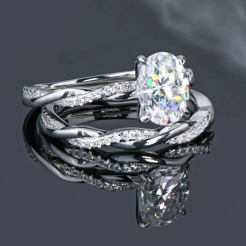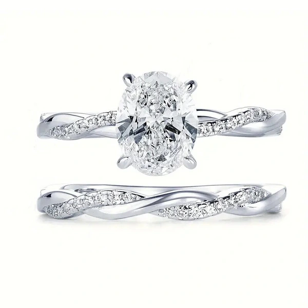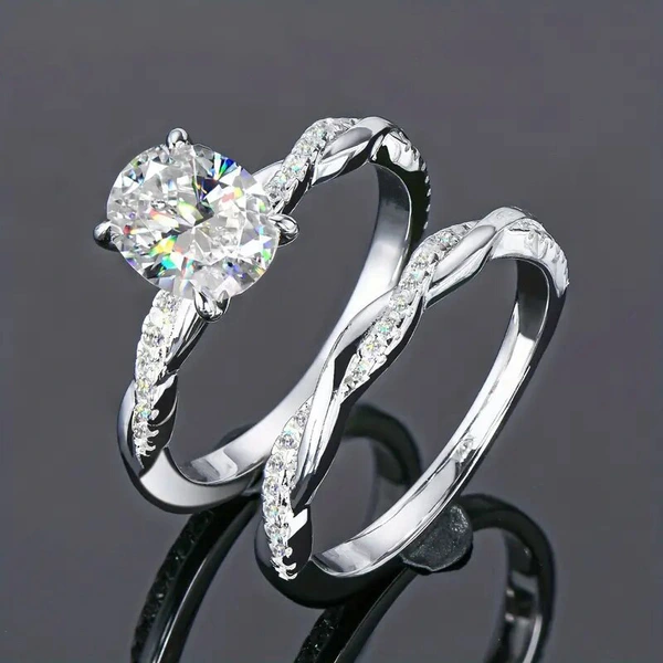 خاتم كلاسيكي بسيط من الزركون مكون من قطعتين على طراز فستان الزفاف مع إكسسوارات أنيقة ومزاج رائع