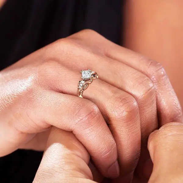 خاتم فلاش فائق الجودة جديد الأكثر مبيعًا على شكل فرع شجرة مزود بأربعة مخالب ومزين بإضاءة حلقة فاخرة لحفلات الزفاف للصديقة