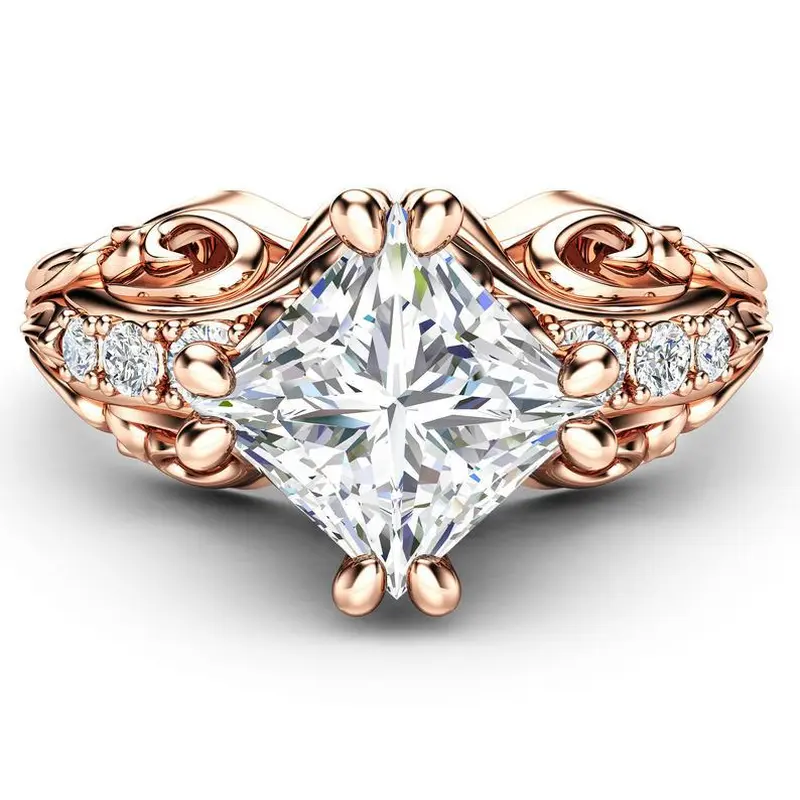 خاتم الأميرة المربع الجديد الأكثر مبيعًا على الطراز الأوروبي والأمريكي المرصع بالزركون مجوهرات نسائية خاتم خطوبة وزواج