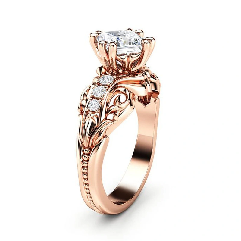 خاتم كلاسيكي جديد مجوف منحوت من الذهب الوردي مرصع بالزركون بتصميم عصري أوروبي وأمريكي رائج البيع