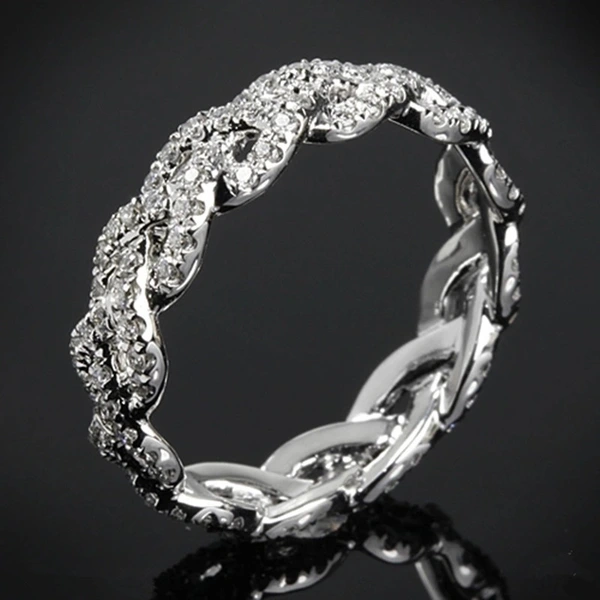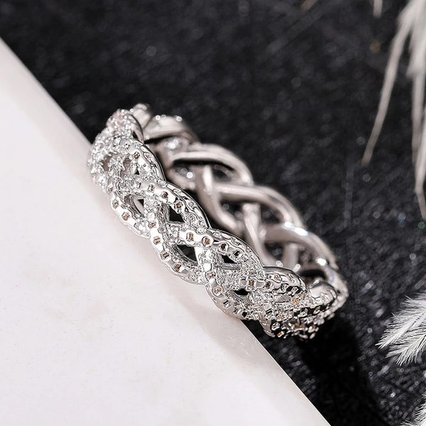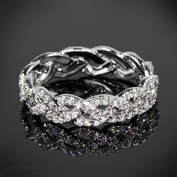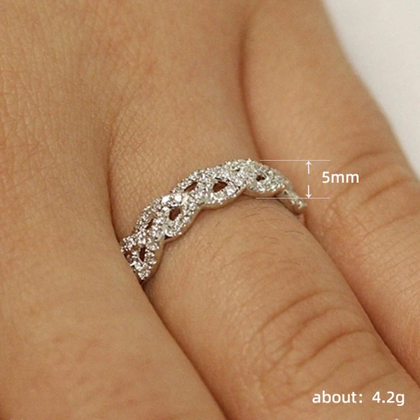 خاتم كلاسيكي مرصع بأحجار الزركون المقلد بأربعة مخالب للنساء، خاتم ذراع ملتوي مزدوج اللون، خاتم خطوبة وزواج للنساء