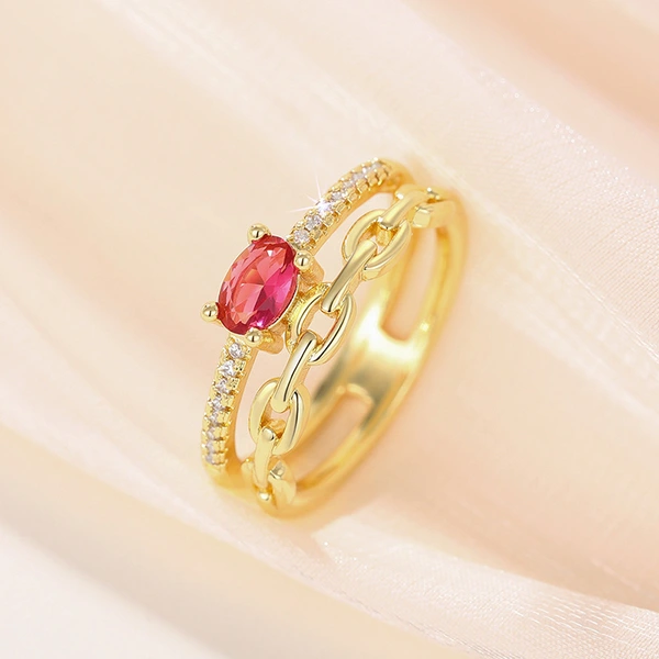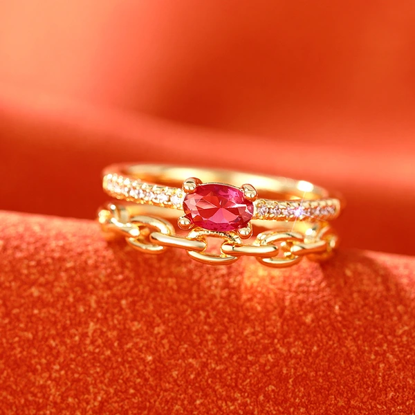 خاتم كوري فاخر خفيف الوزن مزدوج الطبقات بتصميم سلسلة مجوف أنيق وخاتم هندسي عالي الجودة
