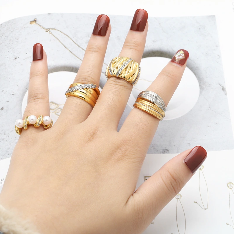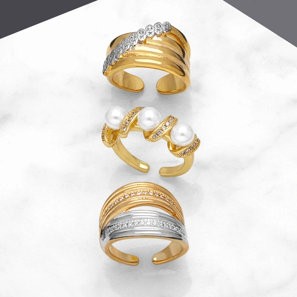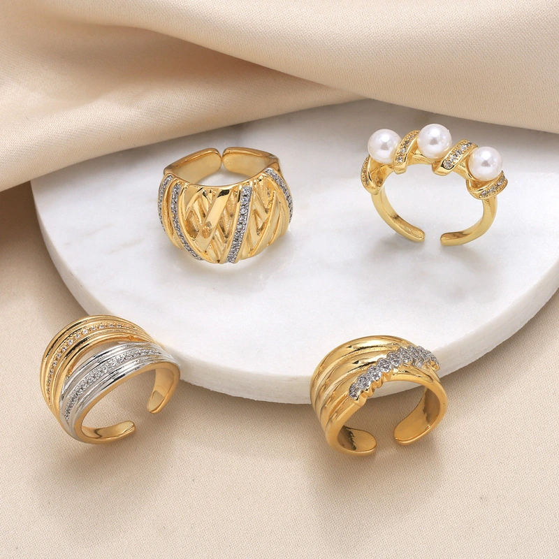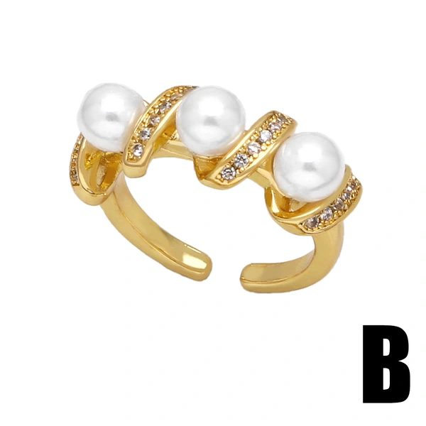 خاتم لؤلؤي ساخن البيع شخصية متعددة الاستخدامات خاتم مفتوح مزدوج الطبقات مجوهرات riq12