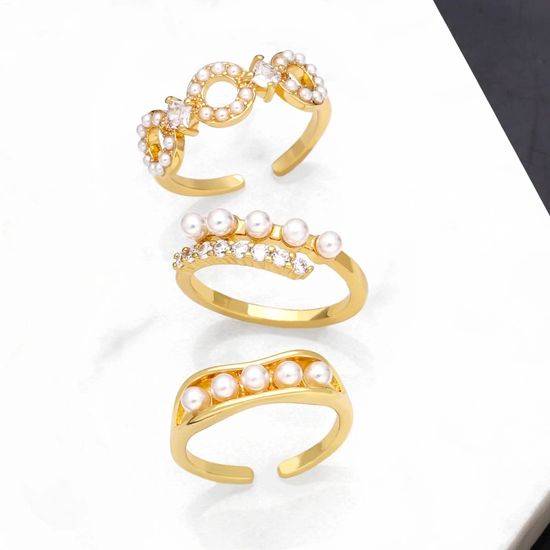 خاتم لؤلؤ هندسي أوروبي وأمريكي معروض للبيع، خاتم نسائي بتصميم بارد، قابل للتعديل بفتحة إصبع السبابة، مقاس 85
