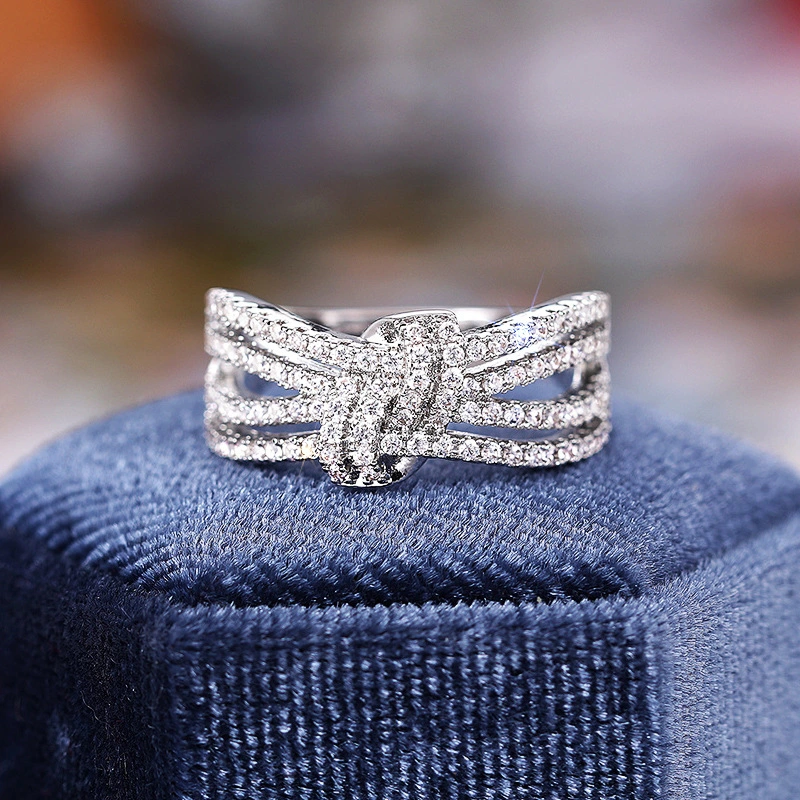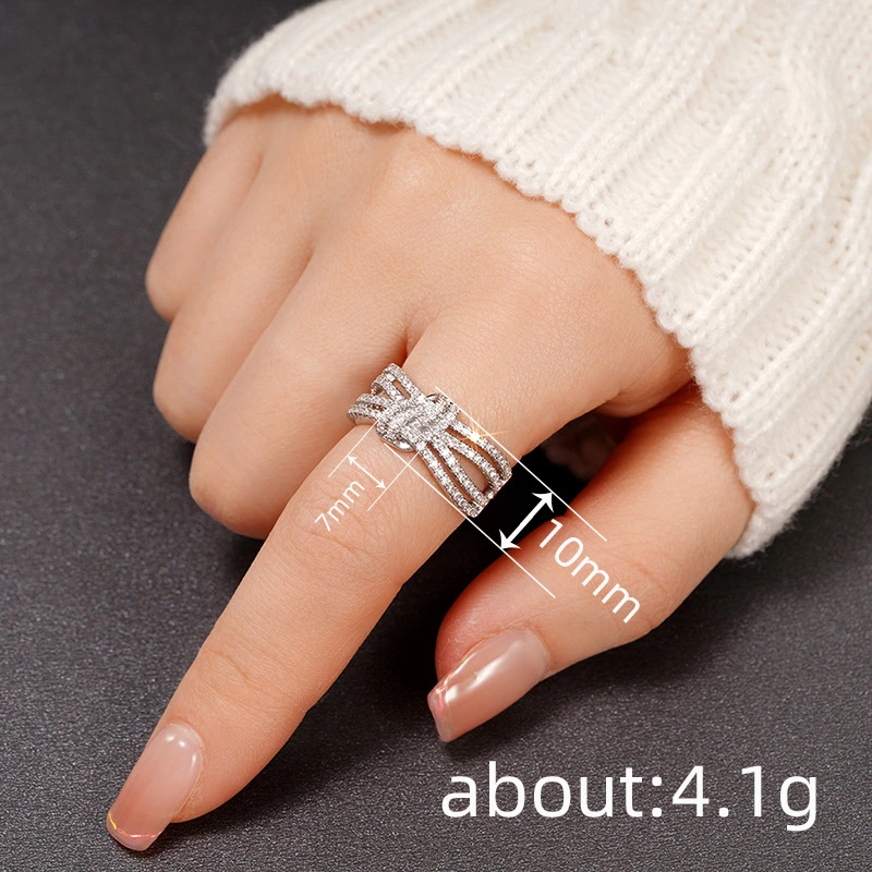 خاتم متعدد الطبقات مرصع بالزركون الحلو من المبيعات المباشرة الأوروبية والكورية، أنيق ورائع، خاتم واحد أنيق على شكل قوس مجوهرات
