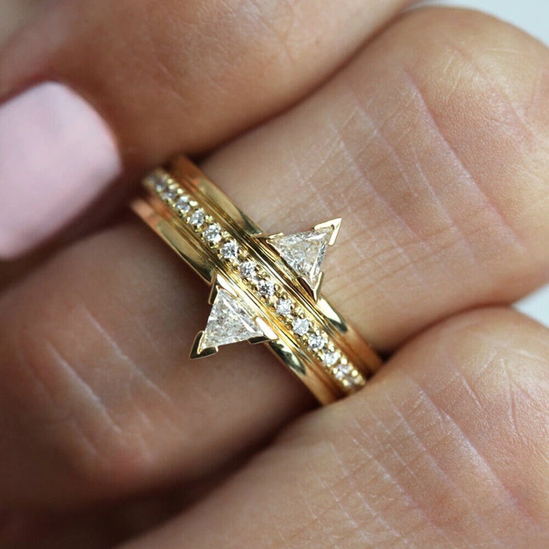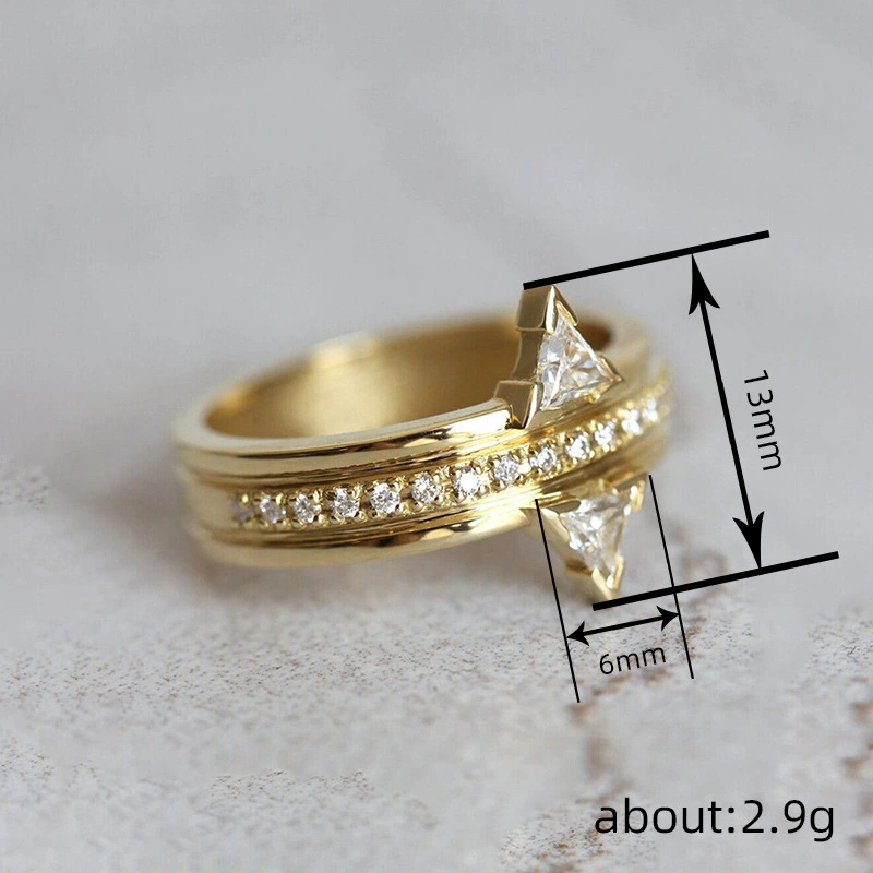 خاتم مثلثي بتصميم مميز، مرصع بالزركون، خاتم فردي شائع، مجوهرات فرنسية أنيقة